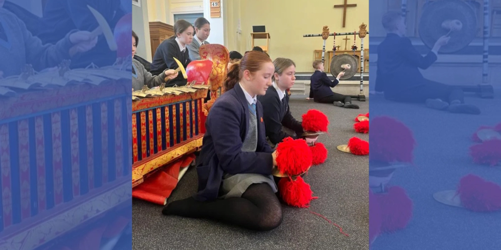 As part of the year 8 music curriculum, pupils spent the last half term learning about Gamelan, which is music from Indonesia. Exploring its cultural roots and musical essence, we collectively learned and performed a piece using glockenspiels, albeit pretending they were authentic Gamelan instruments. This Monday, Inspire works visited Belmont and brought with them a full 30-piece Gamelan set from Indonesia.